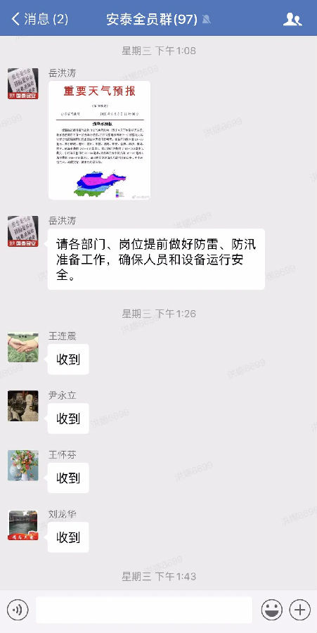 此外,公司積極與相關部門建立溝通渠道,形成聯(lián)動機制,建立了天氣預警制度,確保第一時間得到汛情的預警信息。公司應急抗洪搶險隊隨時待命,以應對突發(fā)事件情況下的搶險、搶修;遇重大汛情立即啟動防汛應急預案,協(xié)調公司各部門相互配合,確保防汛指揮體系高效有序運轉,快速有力地處置險情。嚴格汛期24小時值班值守制度,保證安全生產信息上下暢通,強化應急聯(lián)動,切實增強預防保障能力。